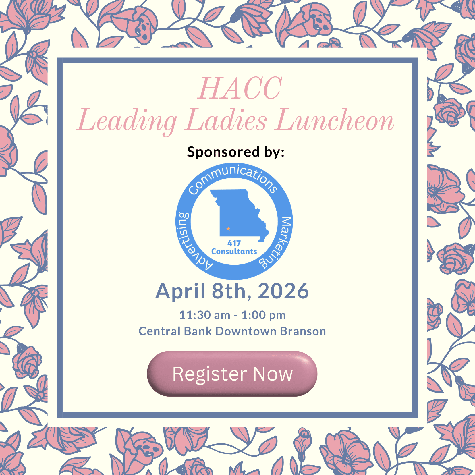 Leading Ladies HACC Networking Event at Central Bank in Downtown Branson Missouri. Prepare to network, laugh, and relax with some amazing women in our community. Lunch provided. Registration is required.Images